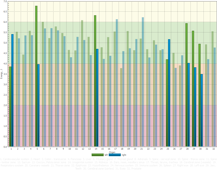 Sputnik measures the energetic influence of a space — rooms, buildings, natural sites, or therapeutic environments. It provides objective, comparable data on how the environment interacts with the human energy field, useful for geobiology and spatial optimisation.